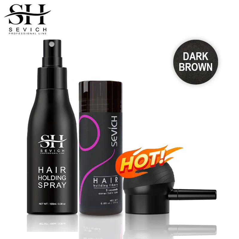 Sevich 3pcs/Lot Hair Fiber Powder+Hair Styling Spray+Nozzle Applicator Pump Keratin Hair Building Fiber Powder Hair Loss Product